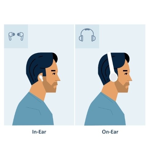 In-ear is usually better for workouts. It’s more stable during movement and easier to carry, while on-ear models can shift with sweat and may create clamp-pressure discomfort under exertion. Keep volume down and take breaks—WHO emphasizes reducing time spent in loud listening and monitoring exposure. For product roundups, see best earbuds for working out and WHO’s guidance at WHO safe listening.